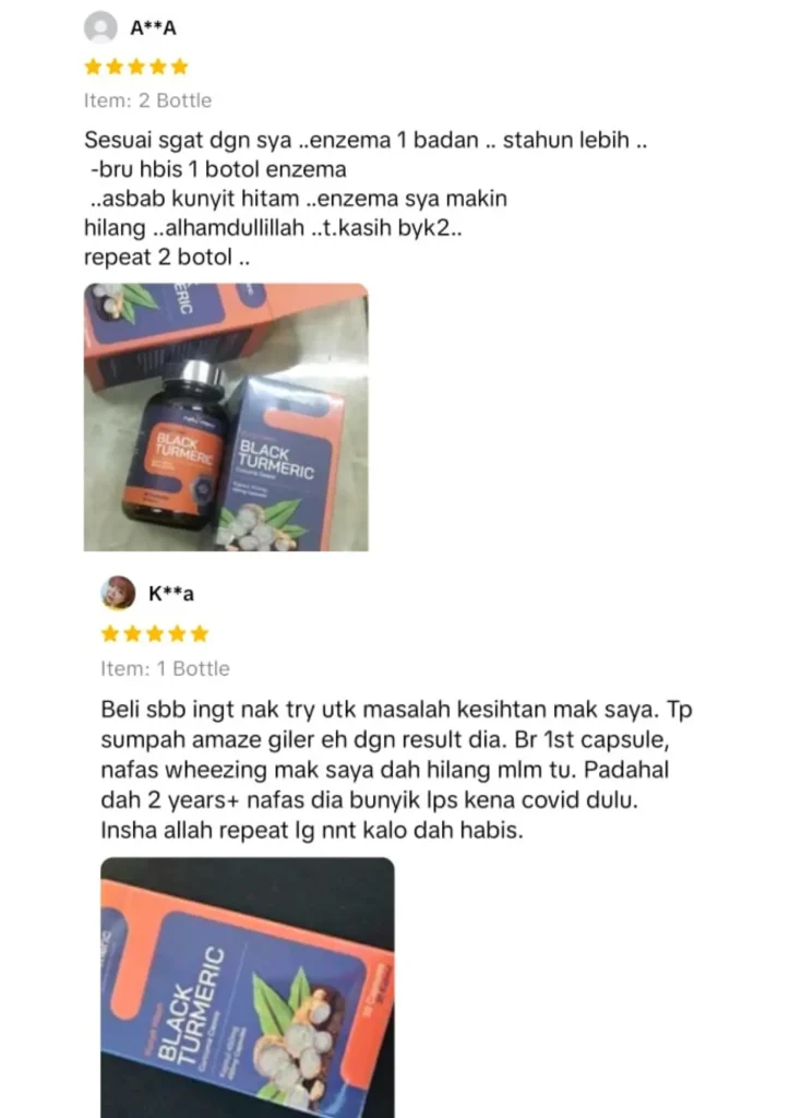“Derita Ekzema bertahun-tahun. Alhamdulillah lepas cuba Naturmeric kali pertama, cepat sembuh.”