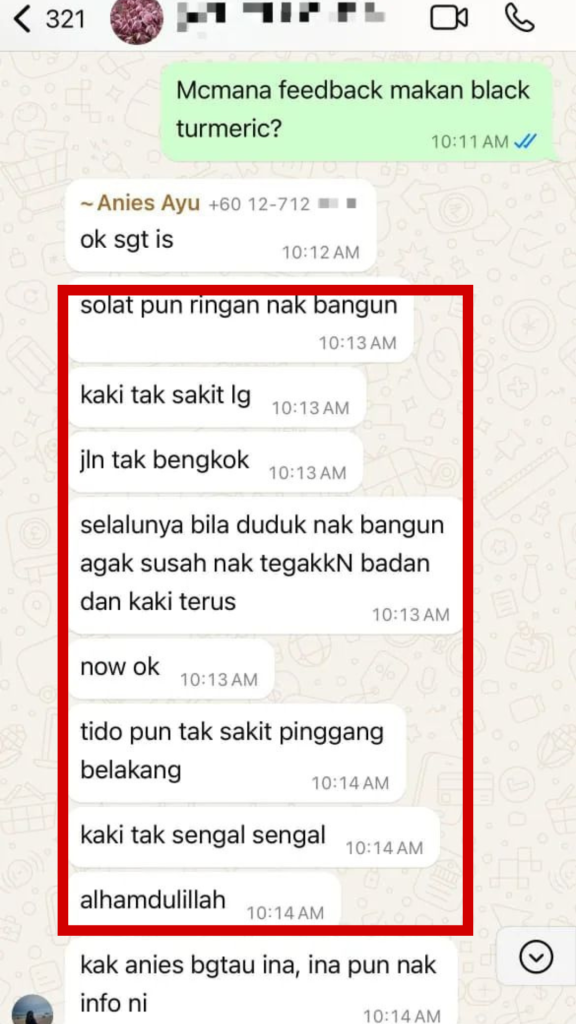 "Masalah sakit kaki dan sakit pinggang lega lepas amal Naturmeric"