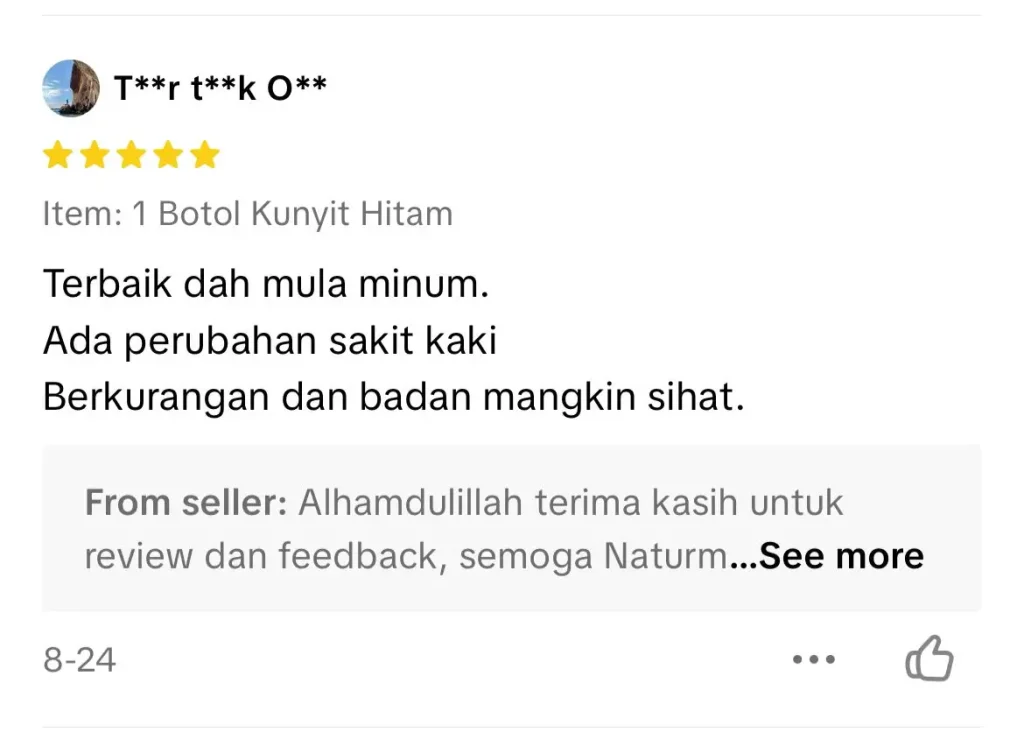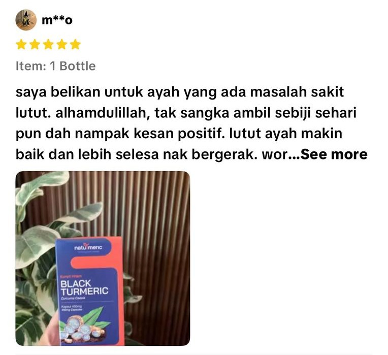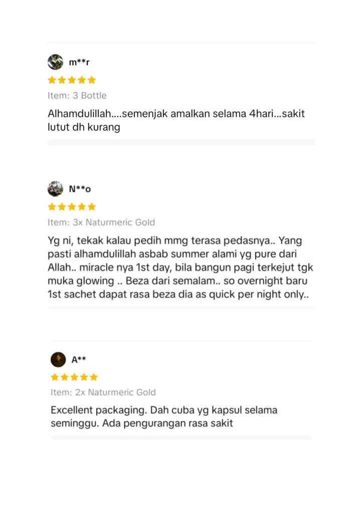 "Alhamdulillah.. lepas amal 2 botol Naturmeric, macam-macam penyakit yang ada selama ini makin berkurang, makin lega."