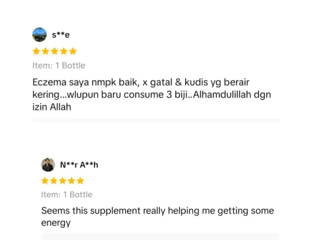 Disclaimer: Apa yang kami nyatakan di web ini adalah benar dan tepat mengikut fakta semasa dan dari ulasan pengguna sebenar. Pengguna dinasihatkan menggunakan produk ini seperti arahan pada produk. Produk ini akan memberi kesan terbaik sekiranya pengguna mengamalkan dengan cara betul berdasarkan banyak testimoni yang diperolehi. Kita berikhtiar, Tuhan yang menyembuhkan
