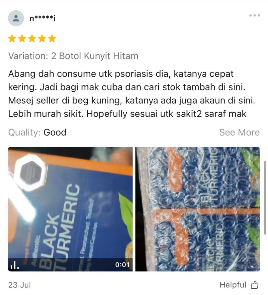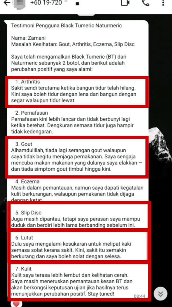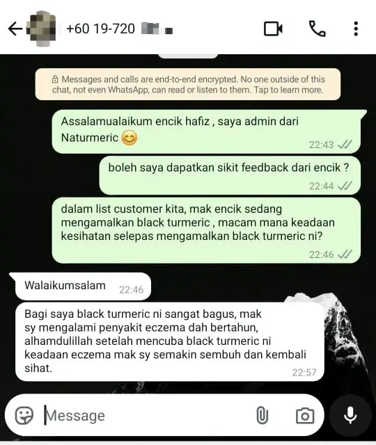 "Mak ada Eczema dah bertahun, Alhamdulillah lepas cuba Naturmeric semakin sembuh dan kembali sihat"
