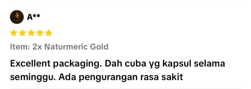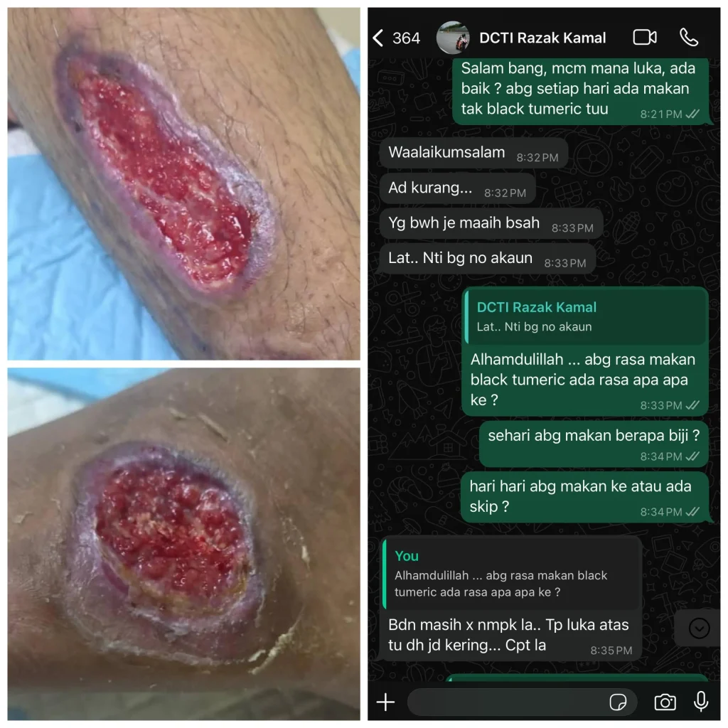 "Luka cepat kering. Kalau tak, memang lambat nak kering luka ni. Alhamdulillah Naturmeric memang terbaik!"