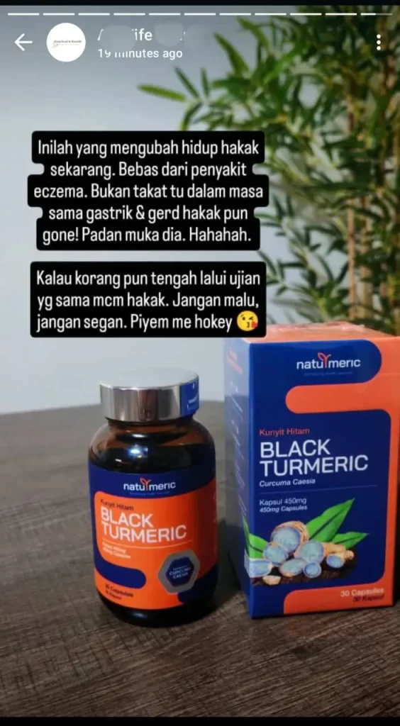 "Alhamdulillah sejak amal Naturmeric, bukan saja Eczema... gastrik dan gerd pun hilang!"