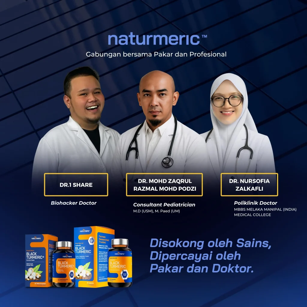 Dengan 5 fungsi utama ini, Naturmeric bekerja secara menyeluruh – dari sendi, saraf, darah, metabolisme, hinggalah ke kulit & sistem imun.