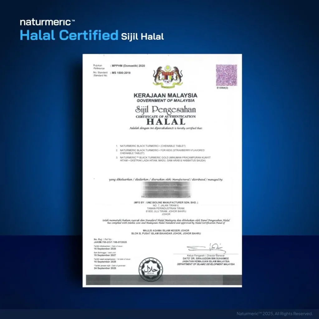 Adakah NATURMERIC ada sijil HALAL dan GMP?