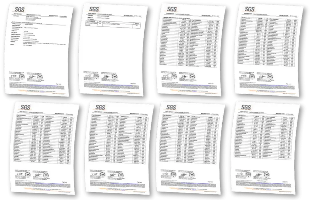- Produk diuji mengikut piawaian USFDA dan disahkan bebas logam berat serta 365 bahan kimia berbahaya oleh SGS Taiwan.